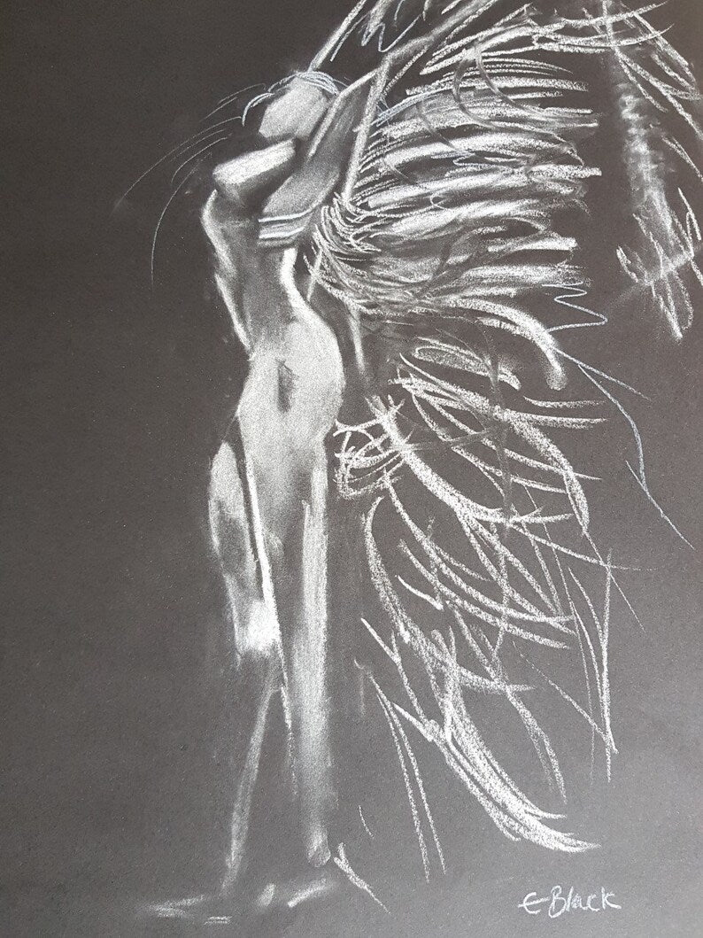 Presenting my original chalk drawing on black paper. This is an original hand drawn piece of artwork and therefore only one is available. As this is an original drawing, there may be some slight smudge marks which naturally occurs during the drawing process.