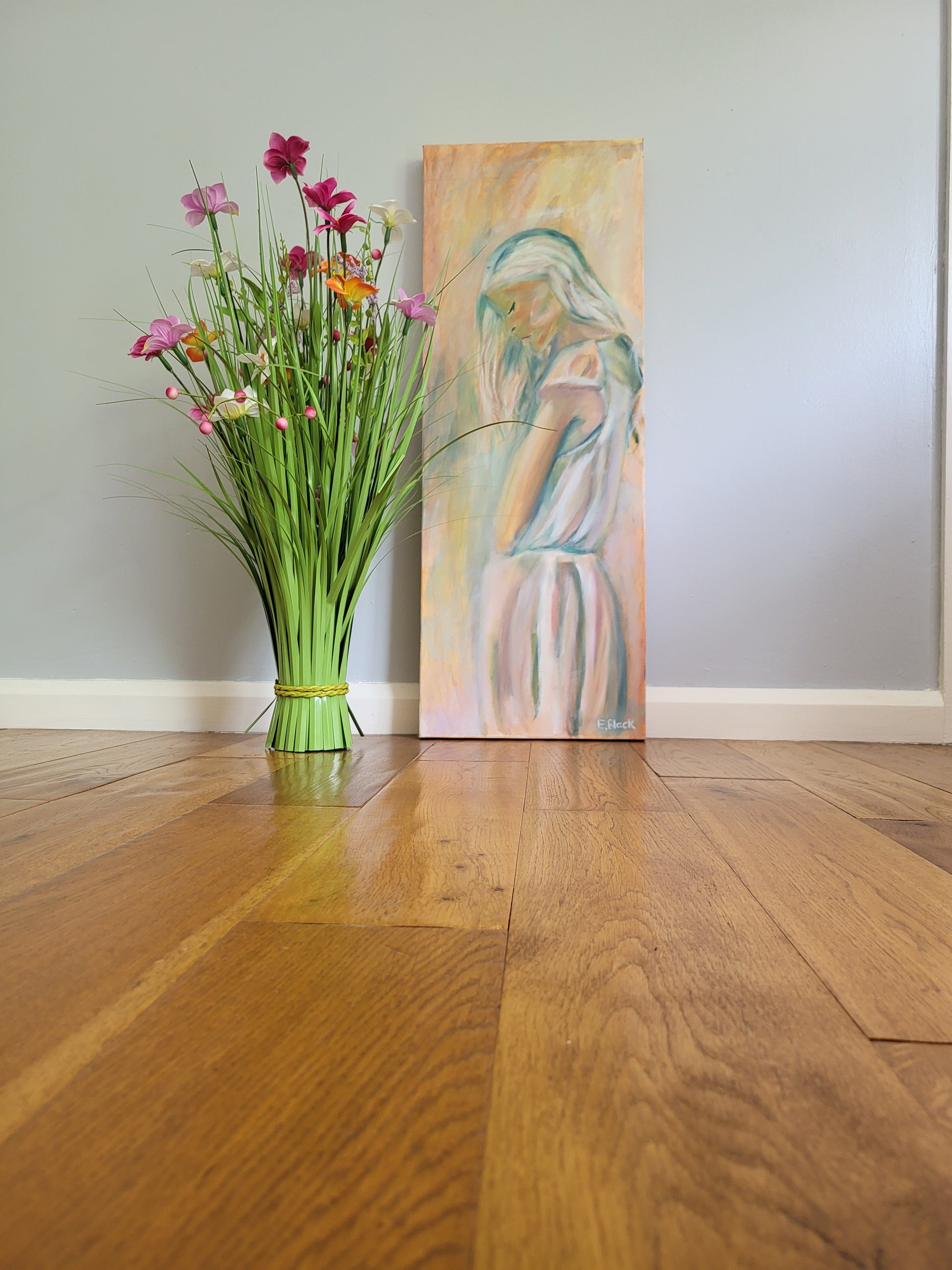Original Alla Prima Oil Painting – The Lost Soul - Figurative Woman in Soft Pastel Tones on a 30cm x 80cm Canvas