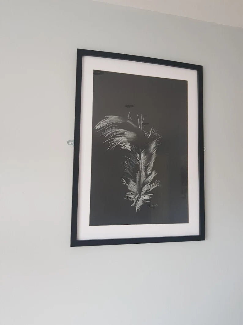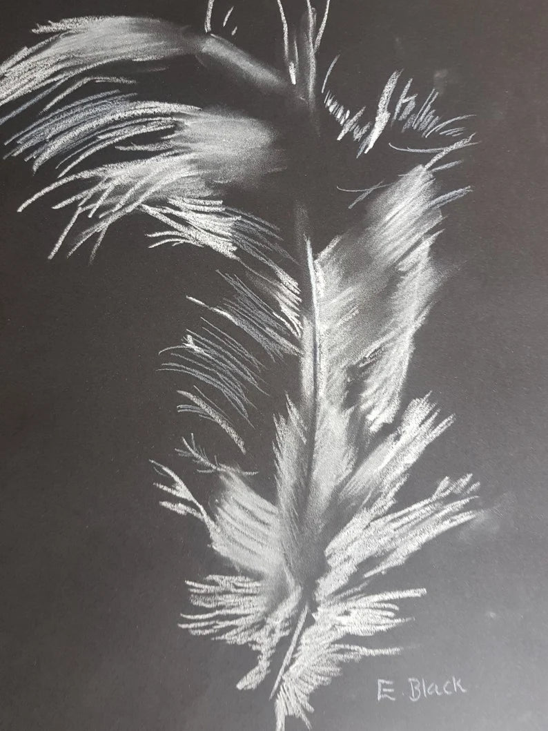 White Feather - Original Chalk Drawing on 59.4cm x 42cm Black Paper