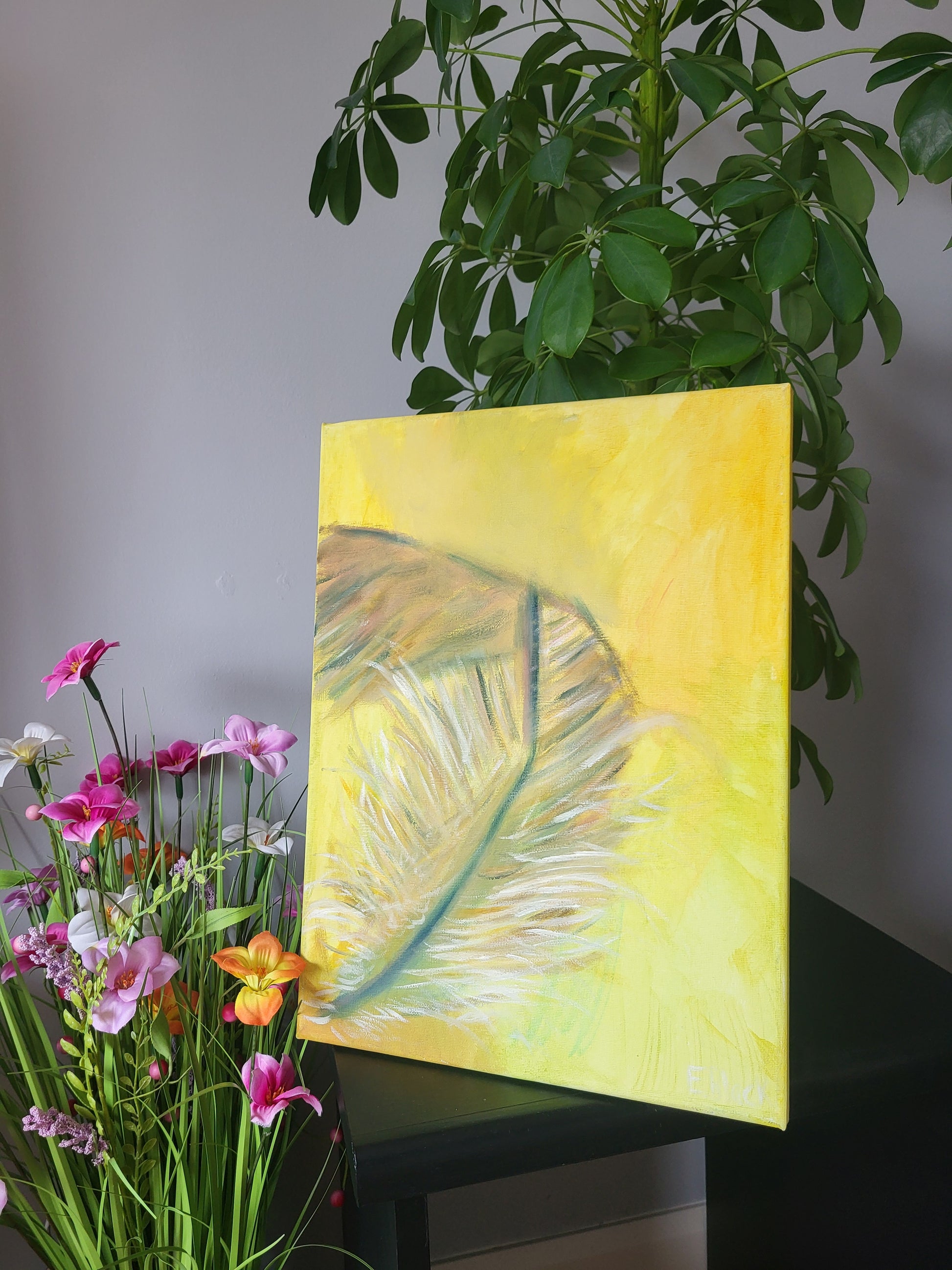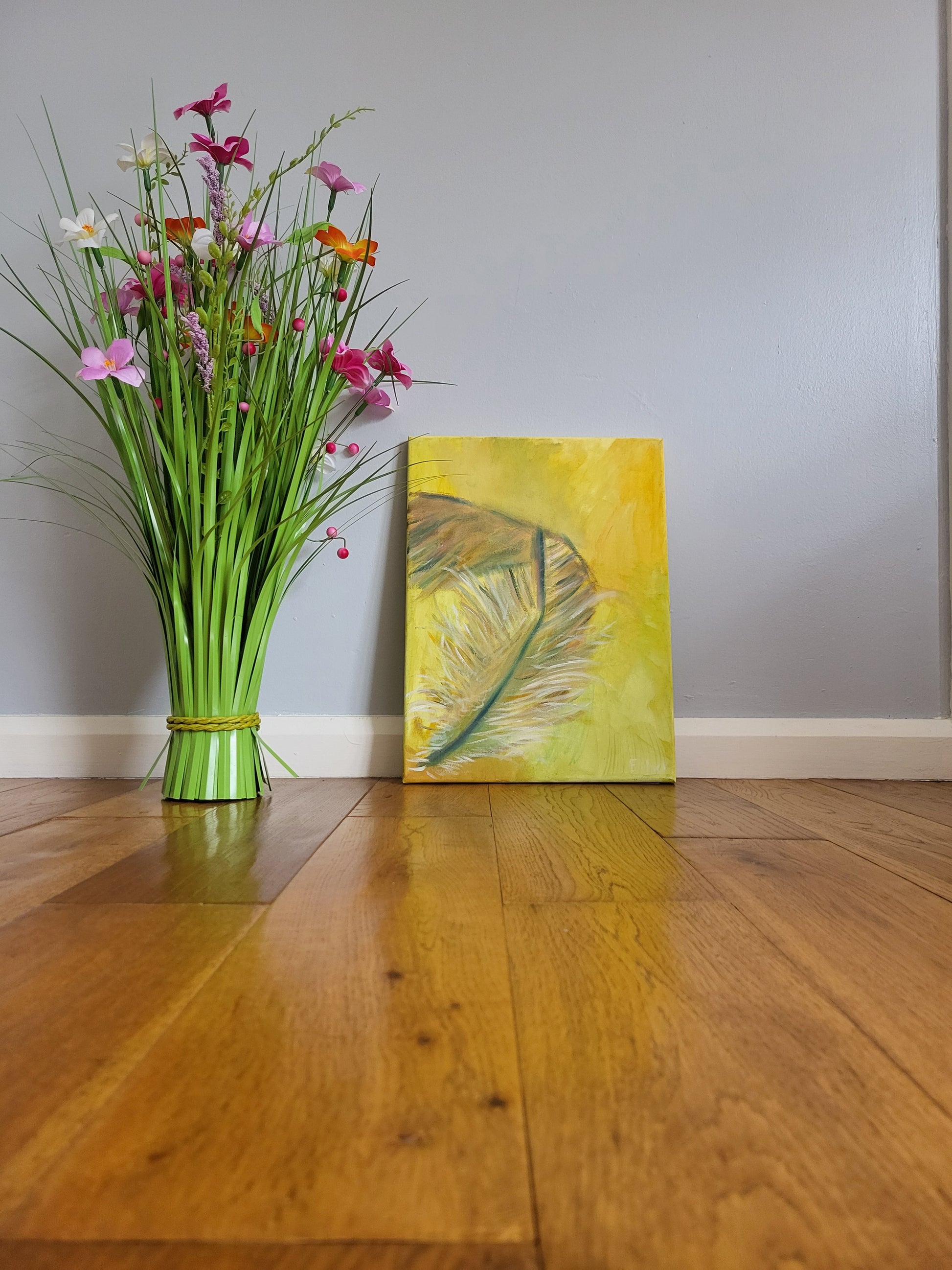 Presenting my original alla prima oil painting 'Yellow Feather' completed on a 30cm x 40cm canvas. This painting is an original piece of artwork and therefore only one is available.
