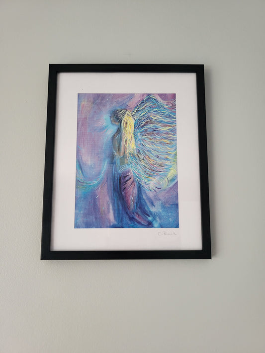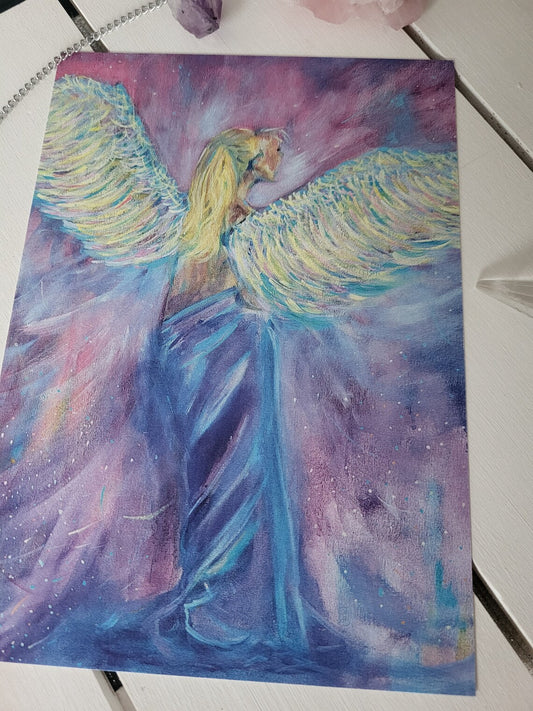 Angel Giclée Print – Spiritual Fine Art A5 Wall Décor with Multicolored Wings - Presence