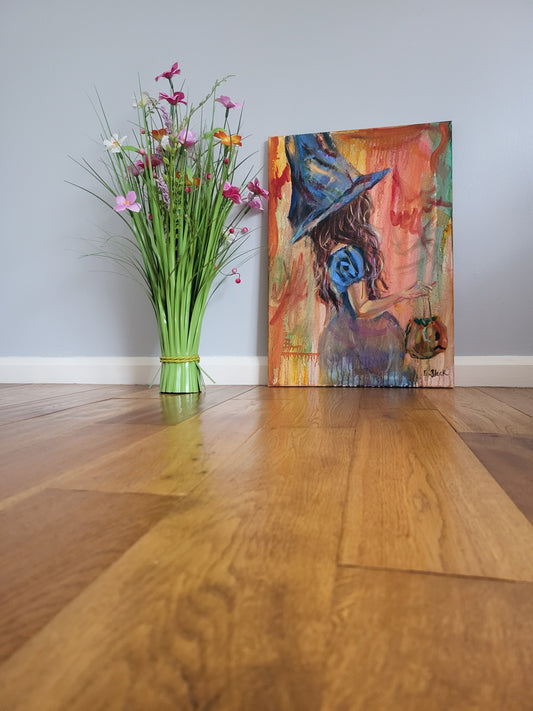 Little Witch – Original Autumn Witch Oil Painting on a 59.4cm x 42cm Canvas - Magical Fall Artwork
