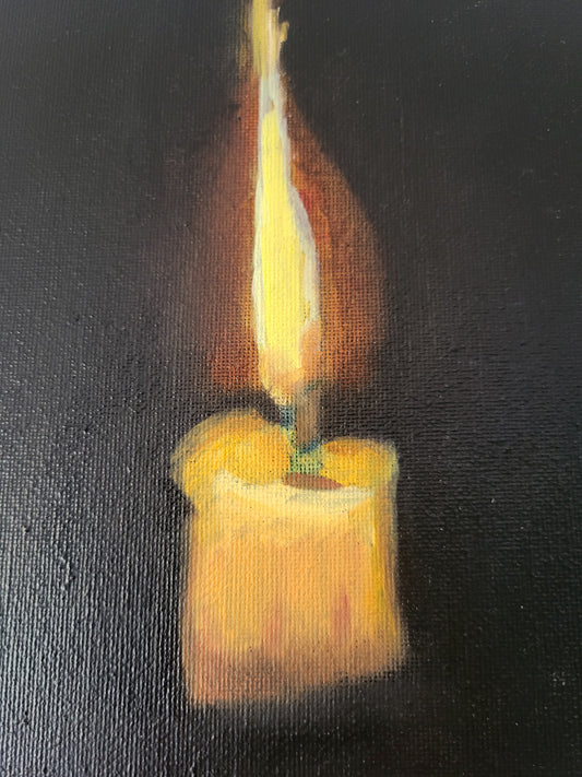 Candle Original Oil Painting – Still Life Flame Artwork on 7" x 5" Canvas Board
