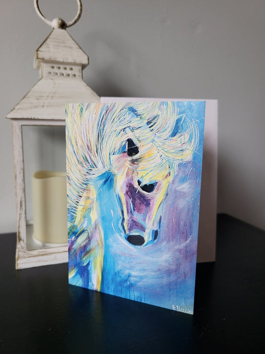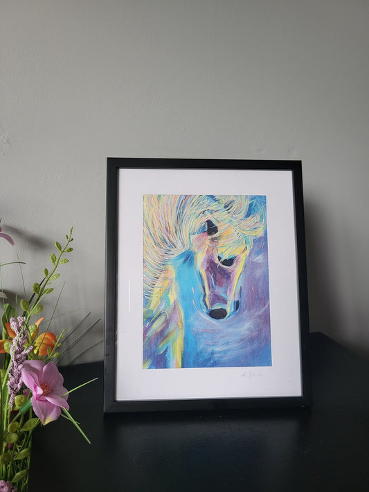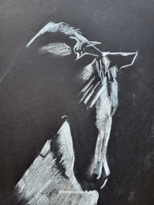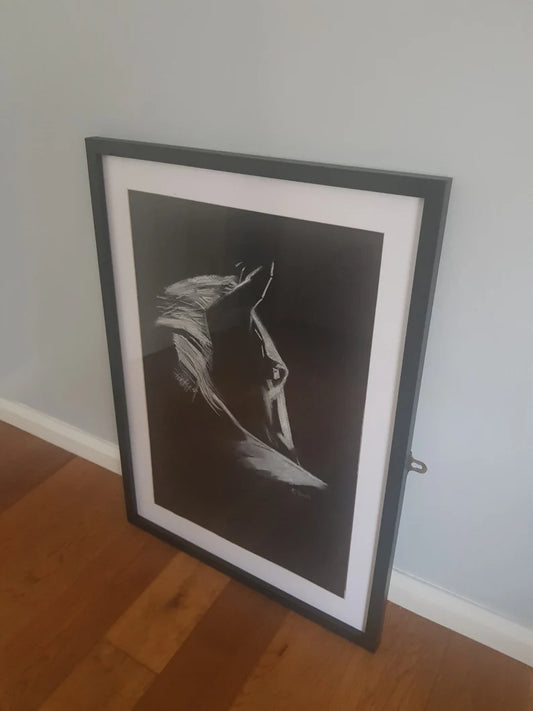 Black and White Horse Original Drawing – Handmade Chalk Equine Artwork on 59.4cm x 42cm Paper