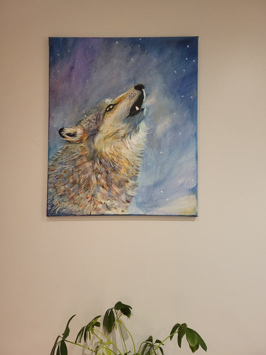 Howling Wolf - Original Oil Painting on a 50cm x 60cm Canvas